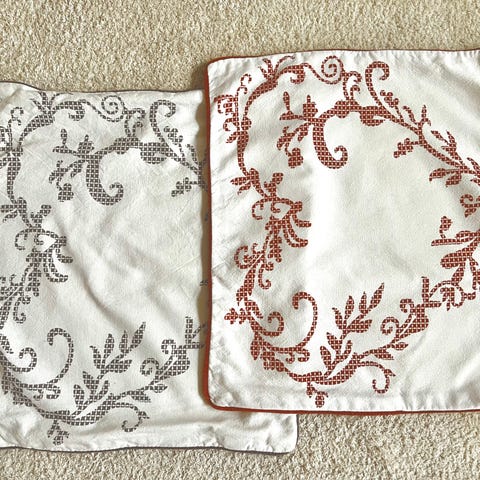 Käytössä vähän aikaa olleet tyynynpäälliset, 4 kpl , pesty kerran ja kutistuneet hieman, ehjät vetoketjut . Koko n.43x43cm. Kaikki yhteensä 25:- kotimaassa postitse lähetettynä.