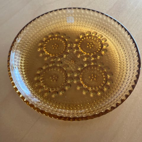 Myydän virheettömässä kunnossa oleva Riihimäen lasin, Nanny Stillin suunnittelema Grapponia lautanen, kirkas väri. Lautasen halkaisija 22 cm.