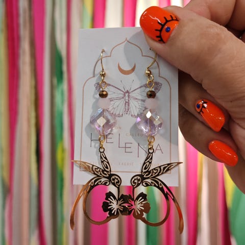 Uniikit, kotimaiset Moon Called Helena korvakorut, tumma roosa