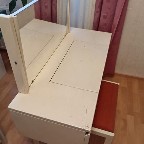 70-luvun kampauspöytä ja tuoli,hieman kulumaa muuten jämäkässä ja siistissä kunnossa,70€/tarjoa