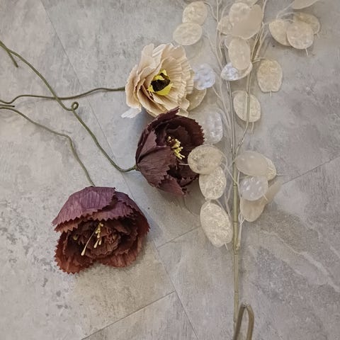 Myydään tekokukat ruukuissa.