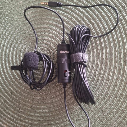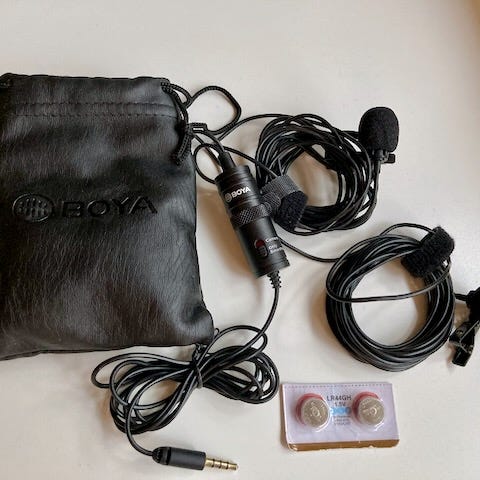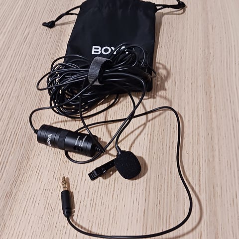 Myydään Boya-lavmikrofoni kahdella mikrofonilla ja yhdellä 3,5 mm liitännällä.