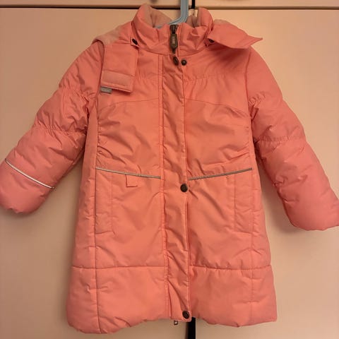 Muhkea ja lämmin täyte. Irrotettava huppu, YKK kultainen toimiva vetoketju, taskut edessä. Reilu koko, menee pitkään. Olkapää-helma 45 cm.