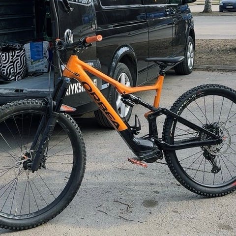 Orbea Kemen Mid 30 sähköpyörä laatuosilla. Integroidut huomiovalot edessä ja takana.