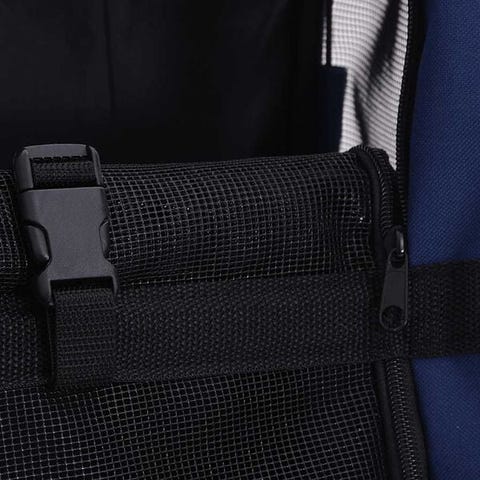 Tämä lemmikkikärry on kevyt ja siinä on tukevat verkkoikkunat kolmella puolella, mikä tekee siitä mukavan suojan karvaiselle ystävällesi. Vetoketjuovet voidaan rullata ylös ja alas, mikä helpottaa lemmikin kulkua sisään ja ulos kärrystä. Tässä lemmikin kuljetuskärryssä on myös 2 vetoketjullista taskua pienten esineiden kuten lelujen, herkkujen ja vastaavien kantamiseen.