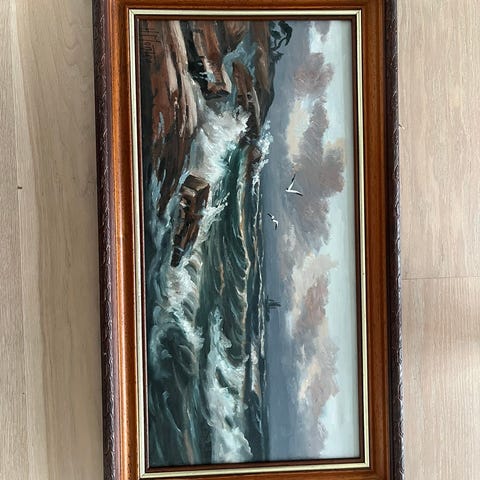 Merimaisema taulu kehyksineen noin 44 x 62 cm.
