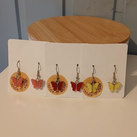 Myydään käsintehtyjä perhos peiliakryyli korviksia. Koukut eivät sisällä nikkeliä.