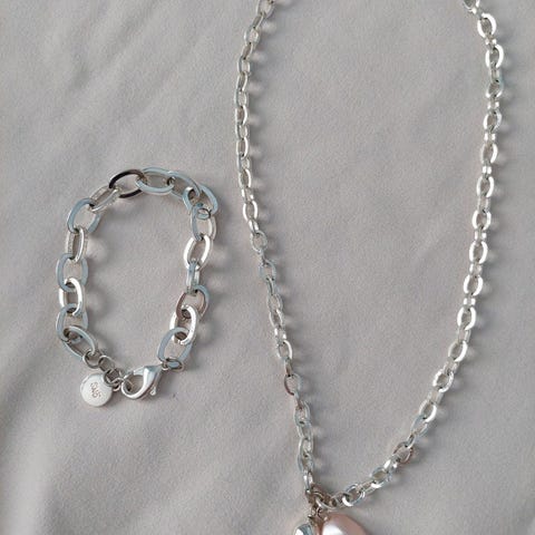 Kaunis näyttävä setti. Rannekorun pituus 21 cm. Yhteishinta