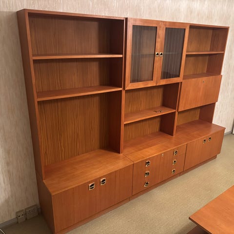 4 erillistä kaappia, yllä yhden kaapin koko. Jokaiseen kuuluu 2 lasitasoa ja (ovet haluttaessa, ovat nyt irrotettuna). Vain nouto.