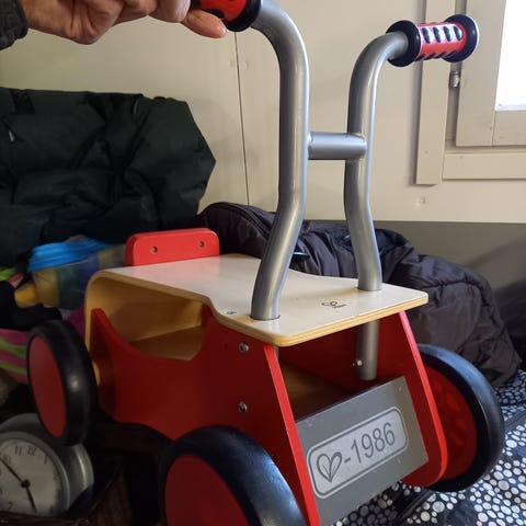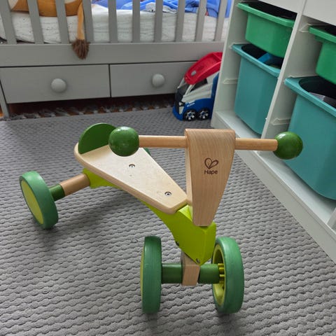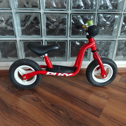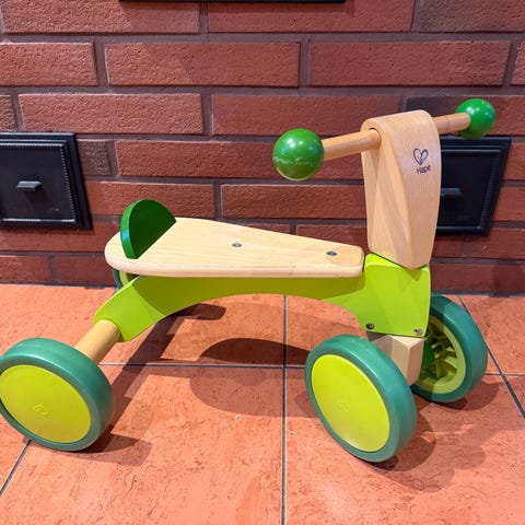 Lasten puinen potkupyörä sisätiloihin, pehmeät renkaat. Ollut käytössä meillä vuoden.