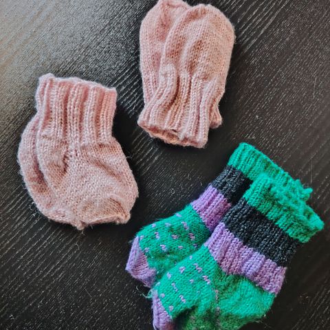 Vauvalle villamyssy, lapaset ja villasukat. Saatu, ei tullut meillä käyttöön. Käsityönä tehty, ei kokolappua, noin 0-6kk arvioisin.