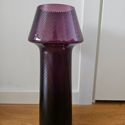 Riihimäen Lasi, Aimo Okkolin, Stromboli Maljakko. Stromboli-maljakon on suunnitellut Riihimäen Lasille Aimo Okkolin. Ollut tuotannossa v. 1963-1968. Maljakon korkeus on n. 25 cm, ja väri siniharmaa.
