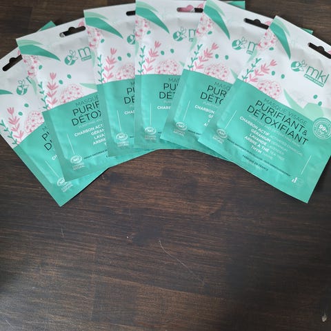 With hyaluronic acid and organic argan oil. 99% natural origin, dermatologically tested, made in France. Each mask 10 ml.