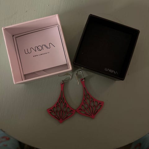 Uusi LUMI nahkainen korurasia. Musta nahkainen kuutiomallinen korurasia, jossa vetoketju kiertää ympäri. Violettinen Lumi logo nahkaa. Voi käyttää myös rahapussina yms. Mitat kuvissa. Ei toridiiliä. Nouto Sompasaaresta tai postitan, jos ostaja maksaa myös pkn. Katso myös muut myymäni tuotteet.