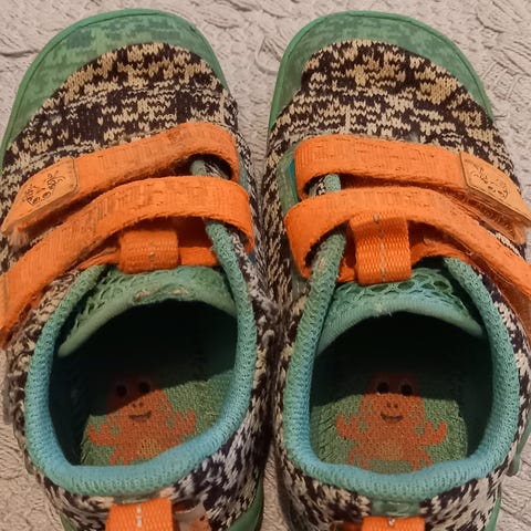 Affenzahn cotton Lucky paljasjalkakengät koko 26, sisämitta 17,1cm. Yhden tytön paljon käyttämät, kulumaa kengän etuosassa.