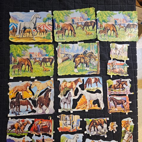 Sekava setti kiiltokuvia eri arkeista – kaikissa aiheena hevonen