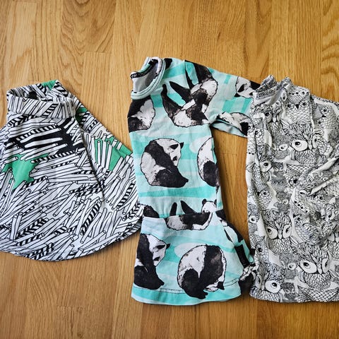 Papun ihana reilunkokoinen 74/80 mustavalkoinen setti. Tullut meille käytettynä: pesut näkyvät värien haalistumisena ja hentona pesuhaituna. Siisti ja suloinen kuitenkin vielä. Housut ehkä sample, kun lappua leikattu?