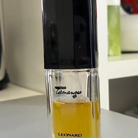 Myydään Leonard Tamango Eau de Toilette, arvioitu koko noin 50 ml, josta jäljellä noin 80 %. Pullon ulkonäön perusteella tuote on vintage, todennäköisesti valmistettu 1980–1990-luvuilla. Pohjassa batch-koodi: 870507. Muovikorkissa on havaittavissa pientä naarmuuntumista.