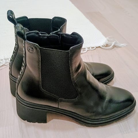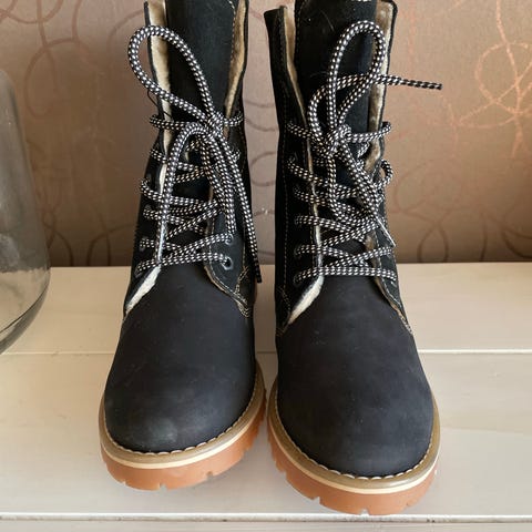 Tamaris Talvikengät, koko 39, musta väri. Kengät on valmistettu kestävistä materiaaleista ja ne sopivat talvikäyttöön. Varustettu nyörityksellä ja sivuvetoketjulla helpottamaan jalkaan pukemista ja riisumista. Kengissä on paksu ja pitävä pohja, joka tarjoaa hyvän pidon liukkailla pinnoilla. Kantapää ja korokepohja 80 mm.