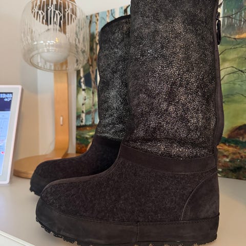 Myydään kuvassa olevat nupukkinahkaiset talvikengät. Käyttö ollut vähäistä eli kunto on todella hyvä. Lesti on leveä ja varpaille on hyvin tilaa myös korkeussuunnassa. Sisäpohja on 6 mm paksu ja pehmoinen. Sisäpohja mitta on n. 24 cm. Väri on viininpunainen. Sivulla on vetoketju helpottamassa pukemista. Nyörit edessä, jolla voi säätää varren leveyttä. Vuori on lämmin eli tarkenee hyvin kovillakin pakkasilla. Ostohinta oli yli 200€. Myynnissä myös muualla.