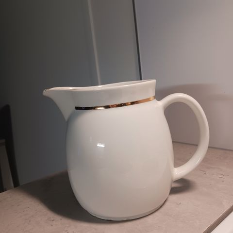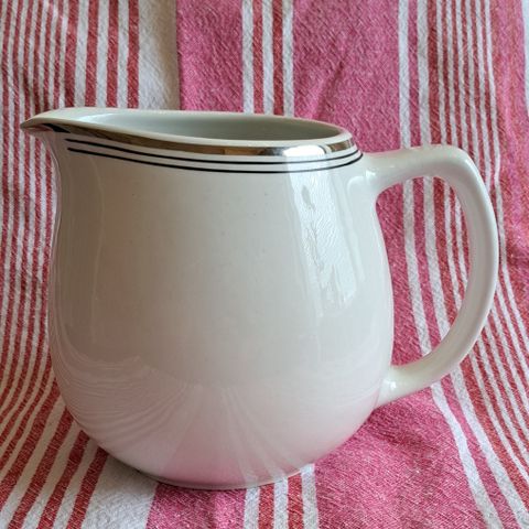Arabia Arki kultaraita maitokannu, jonka korkeus on 13 cm. Kyljessä on särö, joka näkyy toisessa kuvassa. Katso myös muut ilmoitukseni!