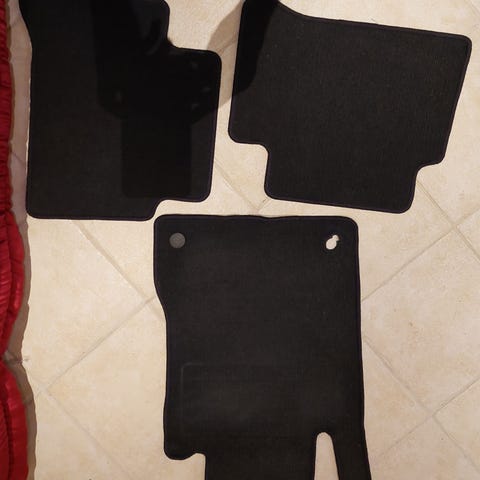 Merzedes Bens matot 4 kpl. Koot: takapenkin matot 2 kpl 48x39, kuljettajan puolen matto 52x75, apukuskin puolen matto 52x83. (Matot mallista E300 hybridi vm. 2021)