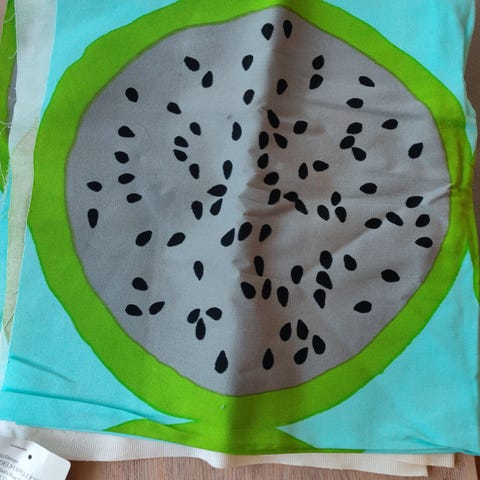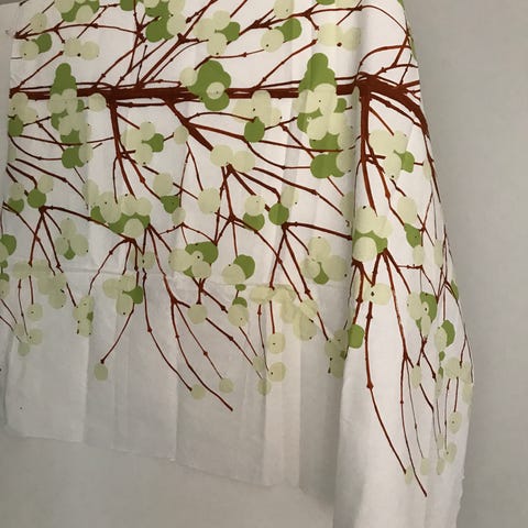 Nora Flemingin vuona 2004 suunnittelema Hevoskastanja -kangaspala. Hevoskastajan väreinä ovat punainen, musta ja vaalea pees.