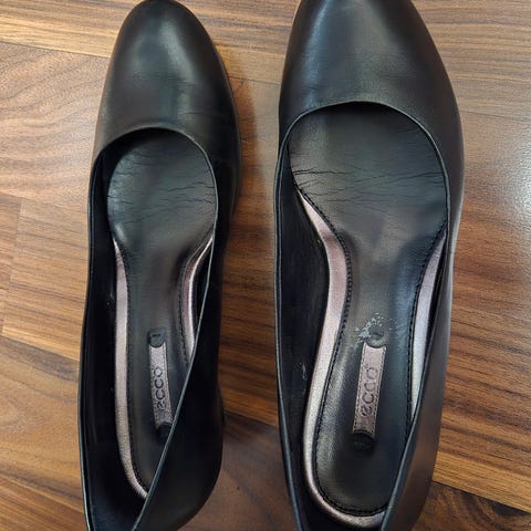 Korko 4 cm. Naisten eccon nahkaiset avokkaat/kävelykengät. Koko 40. Ihan siistissä kunnossa mutta vuoressa kulumaa.