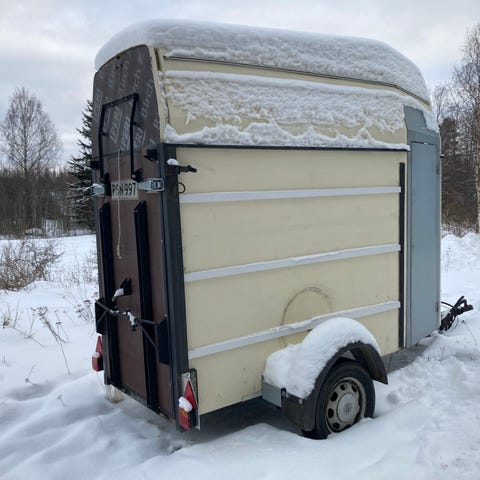 Dalavagnen kuljetusvaunu yksiakselinen, etuovi ja takalastaus. 2 ponia tai yksi hevonen eli väliseinä siirrettävissä, kokonaismassa 1200kg. Nokka pyörä ja tukien kiinnitys uusittu, uudet kesärenkaat alla, varapyörä sekä nastarenkaat omilla vanteilla. Jarruremontti tehty 2024 leimaa 2026 loppuun ja kärry rekisterissä/vakuutettu mutta vähällä käytöllä. Lattia ehjä hyvällä kumimatolla, ulkoseinien maalivikaa sekä perälaudan yläpuolella oleva vaneri kulmista kulunut joskaan ei vaikuta käyttöön. Aisalukko mukaan, sähköt toimii.