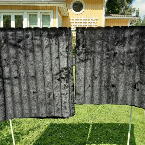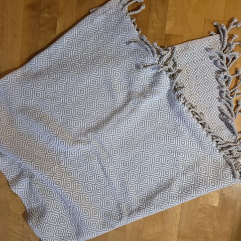 Hemtexistä ostettu tekoturkisviltti (130 x 170 cm) ja kaksi tyynynpäällistä vetoketjulla (50x50 cm).