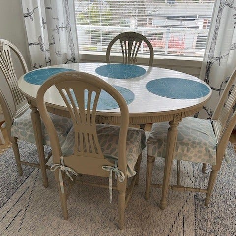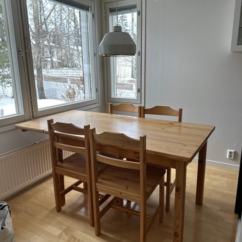 Ruokapöytäryhmä myynnissä, sis 4 tuolia.