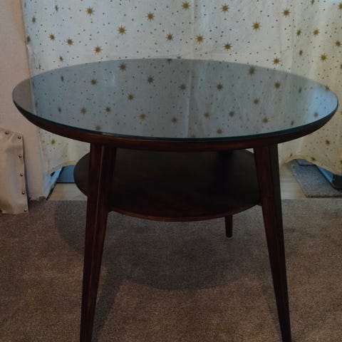 Casetti sohvapöytä on halkaisijaltaan 80 cm. Kansi on valmistettu mdf-levystä jonka pinnalla on saarniviilua, jalat mustaa metallia.