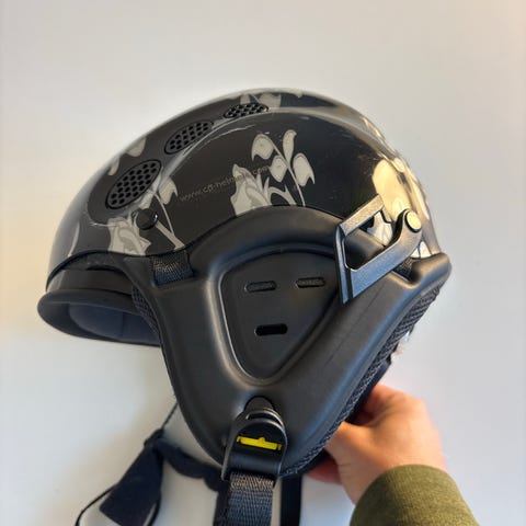 Anonin laskettukypärä. Hyväkuntoinen. Jonkin verran käytön jälkiä pinnassa, mutta täysin ehjä. Lämmin vuori ja irroitettavat korvaläpät.