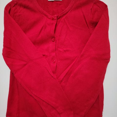 Tummansininen neuletakki, H&M. Kokomerkintä 122/128. Neuleessa pääntiellä kimallelankaa, alaosa yksiväristä. Napit vain yläosassa.