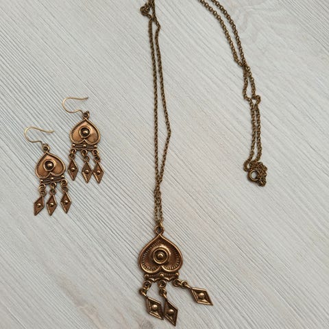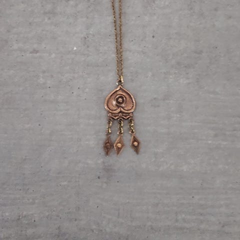 Pronssinen Herttalehti-kaulakoru 60cm ketjulla.
