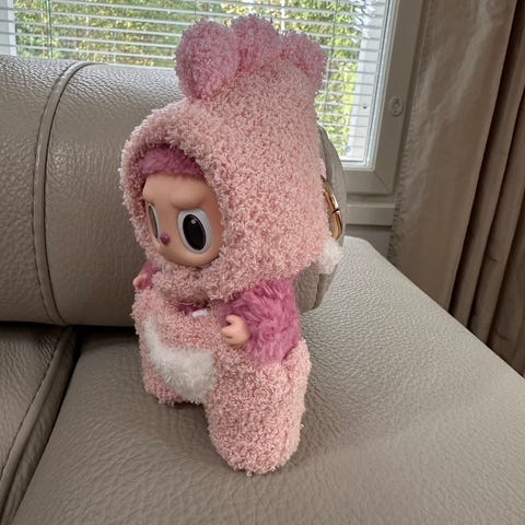 Myynnissä uusi Labubu asu, labubu ei kuulu hintaan.