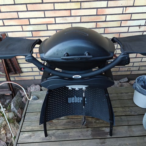 Weberin kannettava Smokey Joe hiiligrilli. Koko 37 cm. Pieni lommo kannessa.