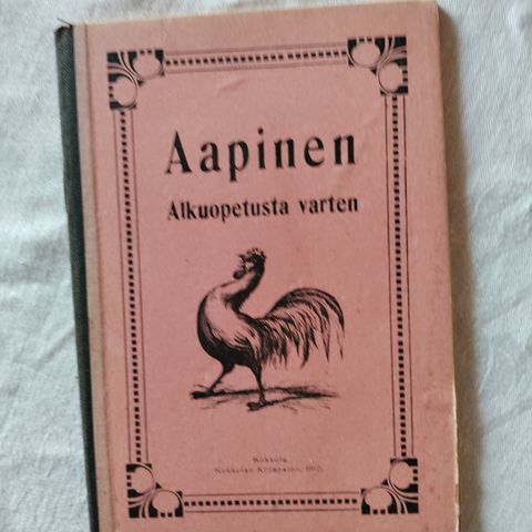 Aakkosista pikku tarinoihin. Ikä tietenkin näkyy ja kirja on kulunut. Mutta ihan siistissä kunnossa ikään nähden.