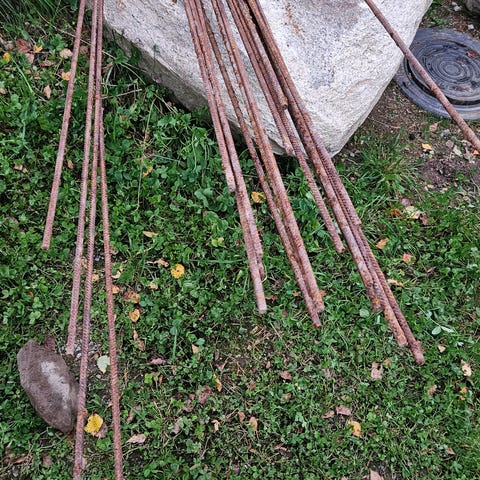 Nippu eri mittaisia ja paksuisia harjateräksiä, 2 - 5m. Järeimmät 30mm. Kaikki kerralla.