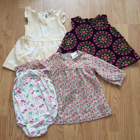 Vaatepaketti: Mekkoja ja boleroita koko 62 (7 kpl)