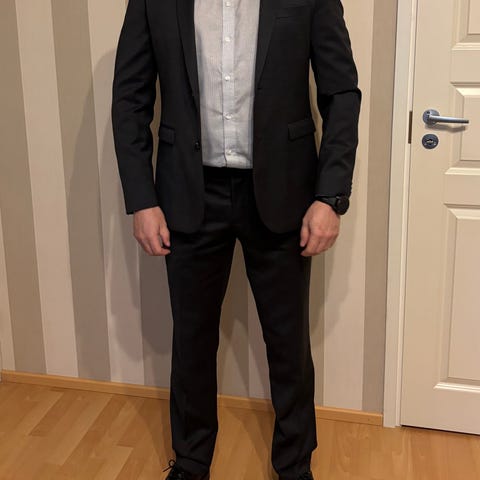 Pari kertaa käytetty Matinique tummansininen puku, nuorekas malli. Takin koko 50 ja housujen 52. Tarkempia mittoja saa pyynnöstä, sovitus myös mahdollinen. Ei ole pesty, ei käytönjälkiä.