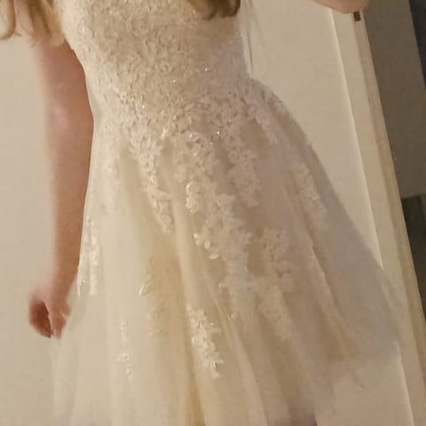Kerran käytetty konfirmaatiossa ja ysientanssit tanssittu. Hyvässä kunnossa silti. Koko 34.