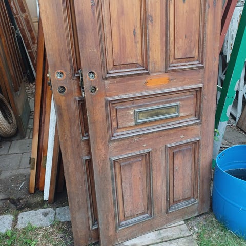 Tamminen puusepän tekemä ulko-ovi. 3 avainta.