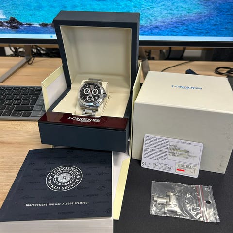 Longines miesten automaatti rannekello, jossa teräsranneke ja musta 44mm:n kellotaulu. Kellon mukana tulee alkuperäinen pakkaus, käyttöohjeet, takuukortti ja rannekkeen sovituspalat.