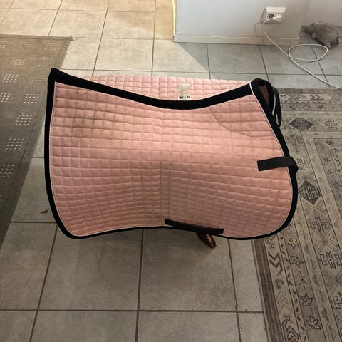 Satulahuovan merkistä ei ole tietoa, mutta hyvässä kunnossa ja käytön jälkiä vähän. Satulahuopa on kokoa shet.