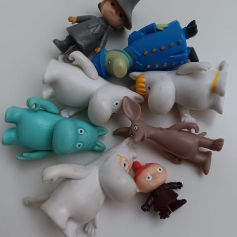 Uusia keikkuvia muumi hahmoja esim. pelilaudalle. Hahmoina Muumipappa, Muumipeikko, Nuuskamuikkunen ja Niiskuneiti. Hahmot ovat kovaa muovia ja näissä on pyöreä pohja. Hahmojen korkeus 4 cm.