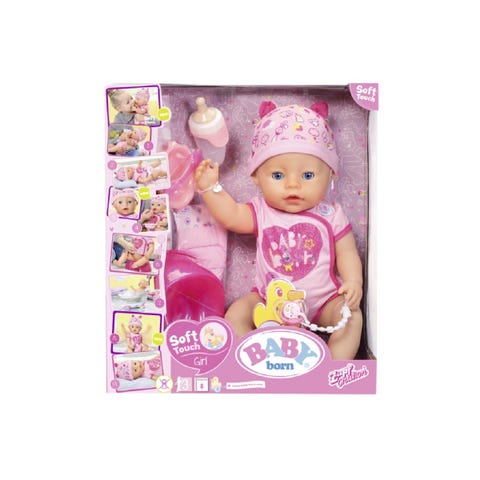 4001167822005 Interaktiivinen BABY born -nukke. Nukella on paallaan ihastuttava vaaleanpunainen body ja pipo ja bodyn alla vaippa. Nukkea voi kylvettaa, juottaa, syottaa ja han itkee oikeita kyyneleita. Nuken silmat sulkeutuvat makuuasennossa. Navassa on nappi, jolla potalla kayminen helpottuu ruokailun jalkeen. Nuken pituus 43cm. Tarvikkeet: kaunis rannekoru, lusikka ja lautanen, ruokaa, tuttipullo, vaippa, potta seka tutti. Nuken voi rekisteroida kansainvalisille www.baby-born.com sivuille ja pelata mm. hauskoja peleja. Interaktiiviselle nukelle on erikseen saatavana interaktiivisia tarvikkeita, jotka tunnistavat nuken ja reagoivat siihen aanin, valoin ja liikkein.