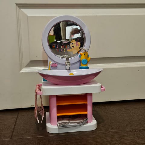 4001167827093 Baby Born nuken pesuallas, jonka peiliin tulee valo, mukana sahkohammasharja, muki ja pyyhe. aani- ja valotoimintoja.