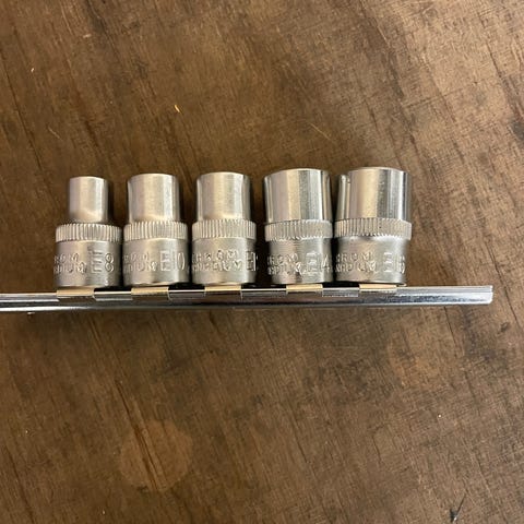 Myydään paketti ketjupyöriä ja kartioholkkeja. 2kpl ketjupyöriä, 1/2" ketjulle, Z14 (14 hammasta) ja Z15 (15 hammasta). Kiinnitys Taper Lock 1008 -holkilla. 4kpl Taper Lock -holkkeja (koot 1008-9, 1008-10, 1008-11, 1008-12). Materiaali teräs. Käyttämättömiä ja hyväkuntoisia, joita vain kerran sopivuuden kannalta kokeiltu ketjukäyttöisen koneen voimansiirtosovellukseen