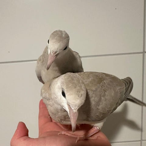 Myydään naurukyyhkyjä. 4 kpl vaaleanruskeita ja pari valkoista. Ihania lemmikkejä. Hinta 20/kpl